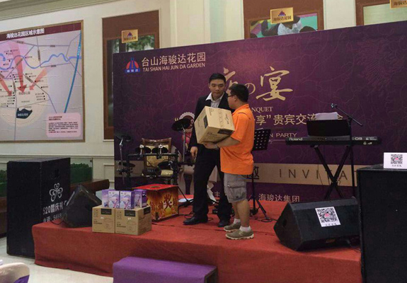 2014年11月,臺山海駿達花園舉辦了多場銀行專場自助晚宴。宴會吸引了眾多銀行VIP客戶到場,現場銷售人員對銀行VIP客戶熱情介紹項目信息,客戶紛紛對項目舉辦的晚宴活動表示滿意。