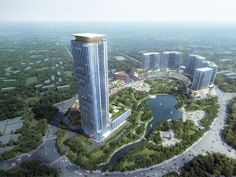 由五星寫字樓、希爾頓酒店、購物中心、步行商業街及產權式酒店等組成,海駿達集團將致力于將項目打造成為郫縣新的城市地標和城市重要的商業中心。
